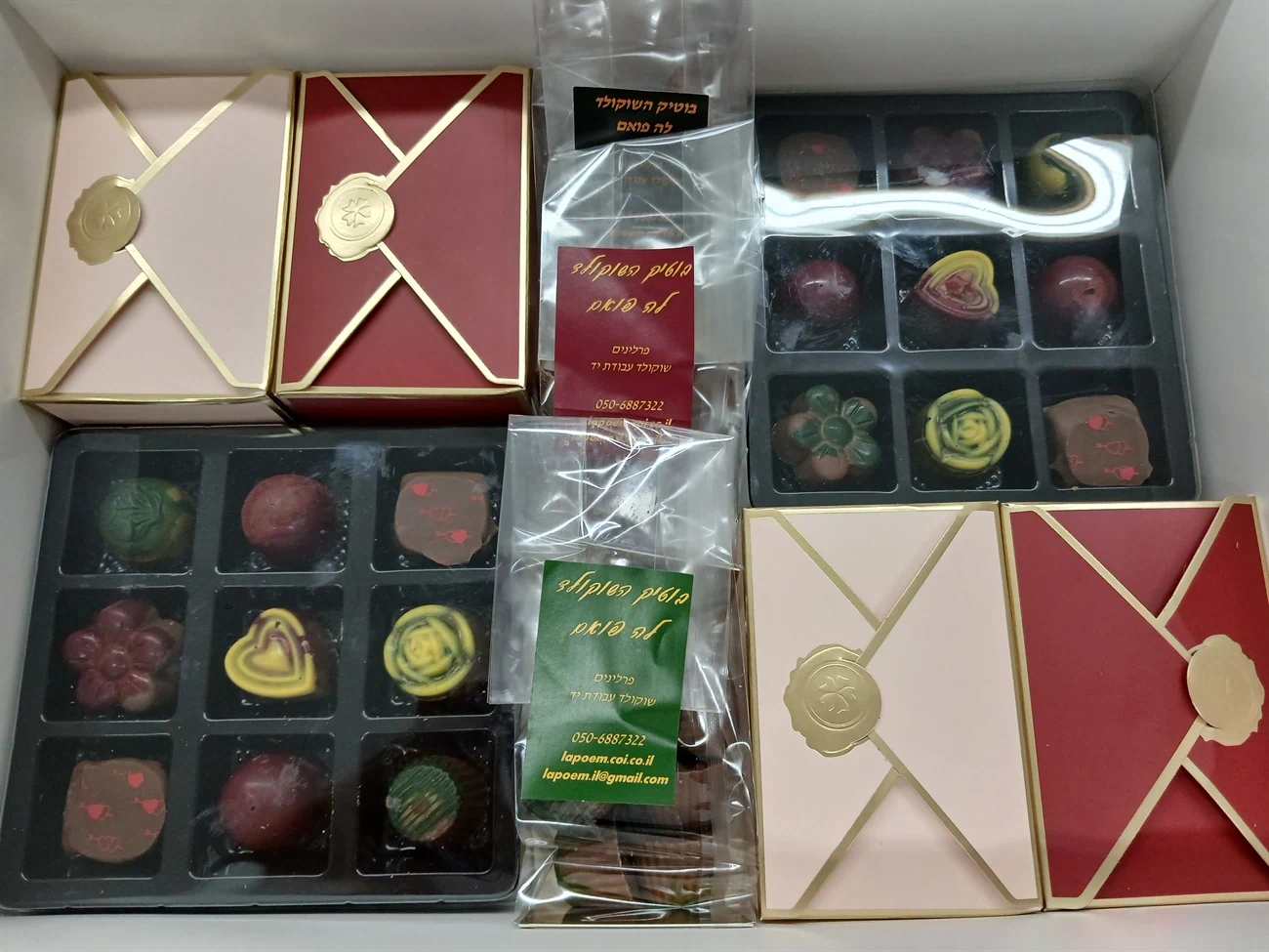 מארז חגיגי הכולל לפחות 85 פרלינים טראפלס טבלאות ומעדני שוקולד